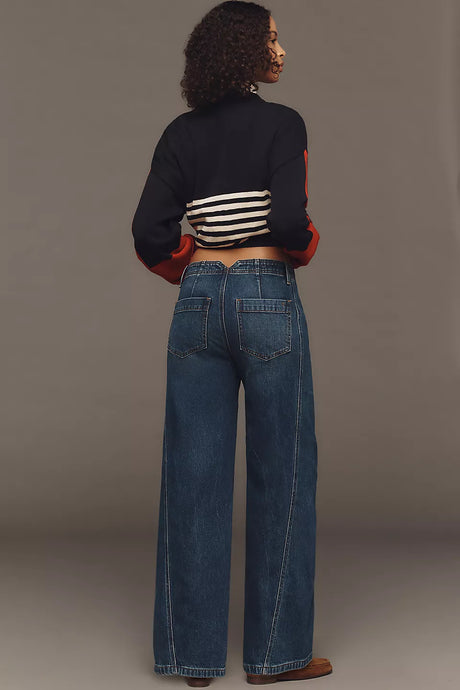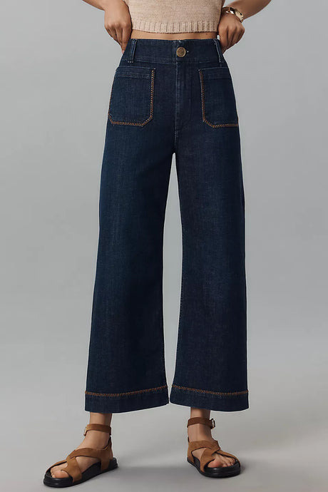 The Colette Whipstitch Crop Wide-Leg Jeans by Maeve - Citroen Wash - Size 26