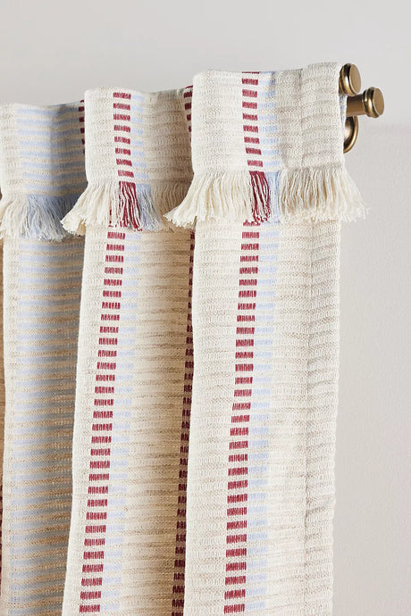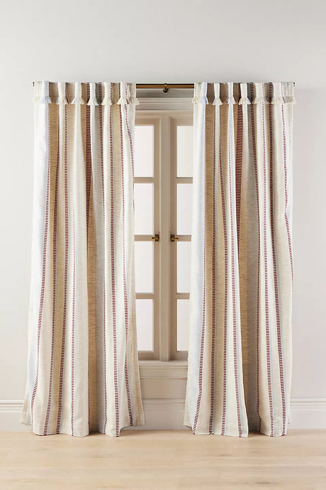 Pieced Stripe Cotton Blend Woven Curtain by Anthropologie - 50 x 63 inches