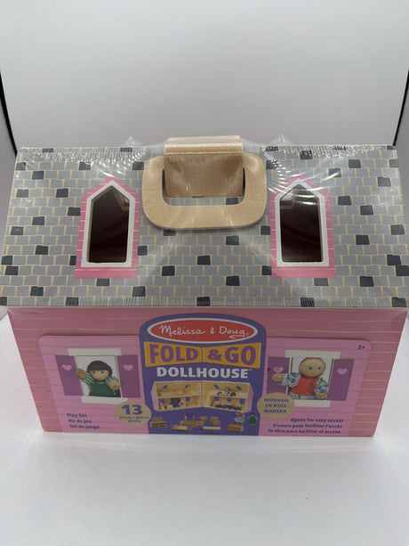 Melissa & Doug Fold and Go Wooden Dollhouse with 2 Dolls and Wooden Furniture,Multi,One Size