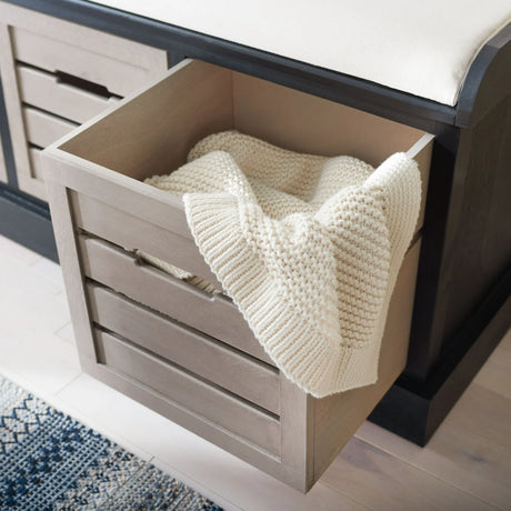 SAFAVIEH Briar 3 Drawer Cushion Bench, Black Frame/Greige Drawers