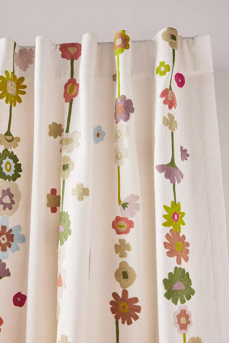 Embroidered Cotton Abstract Floral Curtain by Anthropologie - 96" x 50"