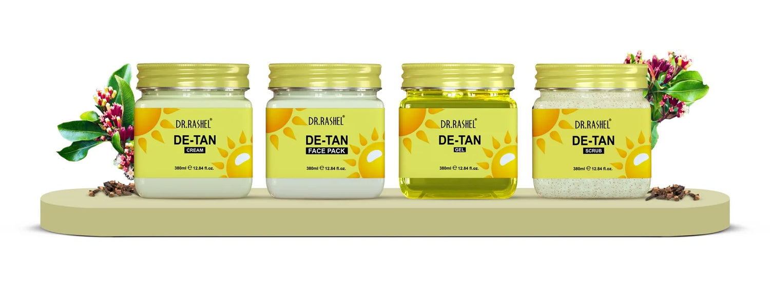 DR. RASHEL De-Tan Pack Of 4 (Scrub, Gel, Cream & Face pack) For Soothing the Skin – 1500 ml