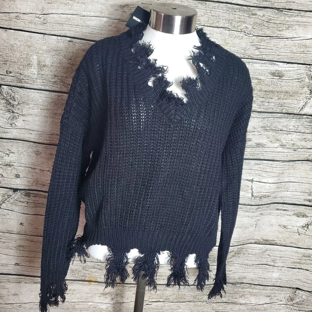 Fashion Nova- Always Distressing ME Out Sweater- Black- Small