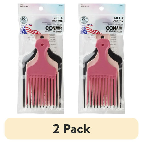 Conair Lift & Define Detangling Hair Pick Combs, with Small, Medium, Large (2 pk, 3 ea)