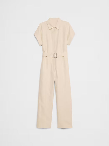 Banana Republic Linen-Blend Belted Jumpsuit Cream Size: S