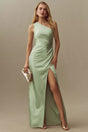 Anthropologie BHLDN Scottie One-Shoulder Side-Slit Stretch Satin Maxi Dress Size: M
