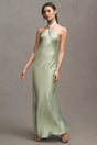 Anthropologie BHLDN Selma Halter-Neck High-Shine Satin Maxi Dress Size: M
