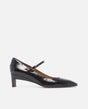 A modern twist on a timeless classic, the Sass Heel is sleek, sharp, and effortlessly cool. Glossy black patent leather delivers bold shine, while the angular toe and low sculptural heel balance style and comfort. A delicate Mary Jane strap adds a nod to vintage charm, reimagined with a fresh, modern perspective. Whether paired with tailored trousers or a flowy midi dress, the Sass Heel brings undeniable downtown energy.