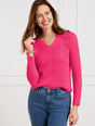Talbots Open Stitch V-Neck Pullover- Pink- Petite Medium