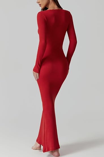 - Body Hugging: the long sleeves, flowing gracefully down the arms, not only enhance the dress's elegance but also provide ample coverage and warmth, making it an ideal choice for cooler weather. The sleeves' graceful silhouette complements the dress's overall body-hugging fit, contouring to your curves in a flattering way that is both casual and alluring.