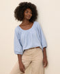 Crafted from premium double gauze fabric, this coastal-inspired scoop neck top delivers breathable comfort with a refined aesthetic. The lightweight construction makes it ideal for warm weather layering or standalone wear, while the relaxed fit flatters a range of body types. Double gauze's natural texture adds visual interest and ensures superior breathability, making this piece a versatile staple for your everyday wardrobe. Perfect for transitional seasons or casual elegance.
