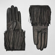 Lambskin and (6.5) Black Lambskin and Cashmere Gloves with Fringe