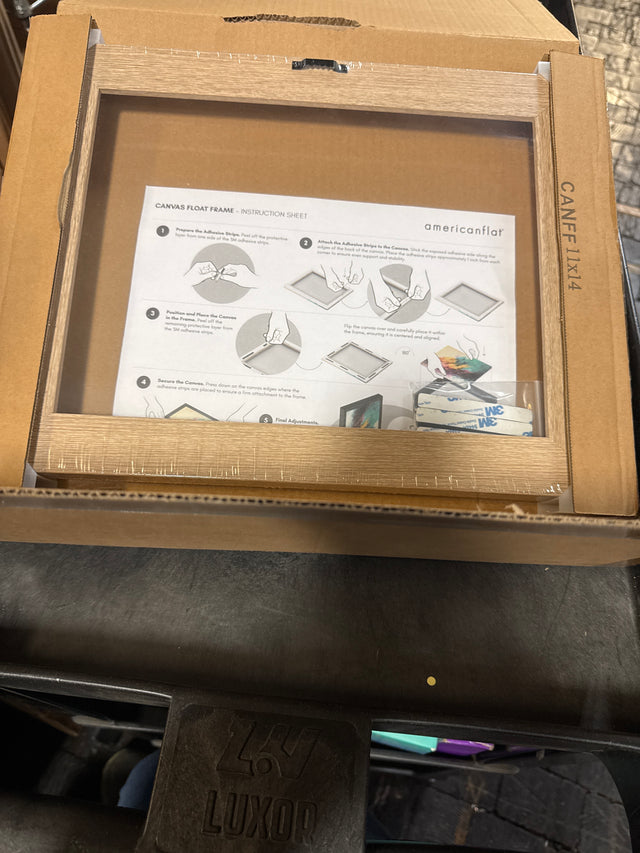 Americanflat 11x14 Canvas Floating Frame with Adhesive Strips Included - Vertical and Horizontal Floating Frame for Artwork - Canvas Frames for Wall Display - Oak is backordered and will ship as soon as it is back in stock.