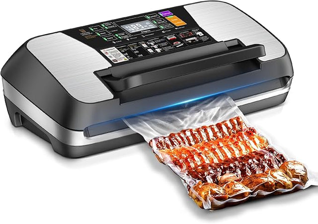 - 【Preserve Freshness & Reduce Waste】 Maximize performance with double heat sealing to keep your food fresh for up to 8 times longer. With just one touch of the auto button, this food vacuum sealer