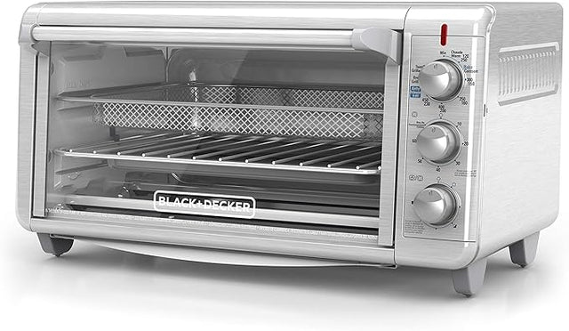 BLACK+DECKER Crisp 'N Bake Air Fry Countertop Convection Toaster Oven, XL Capacity, 8-Slice, 5-in-1, Fits 9” x 13” pan,12” Pizza, 60-Min Timer, Bake, Broil, Air Fry, Toast, Keep Warm, Stainless Steel