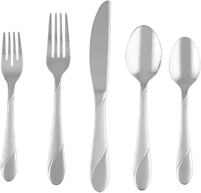 Cambridge Silversmiths Swirl Sand 20-Piece Flatware Silverware Set, Stainless Steel, Service for 4, Includes Forks/Spoons/Knives