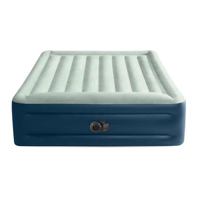 Intex Elevated 18" Pillow Rest Queen Air Mattress with Internal Pump - Off-White/Blue