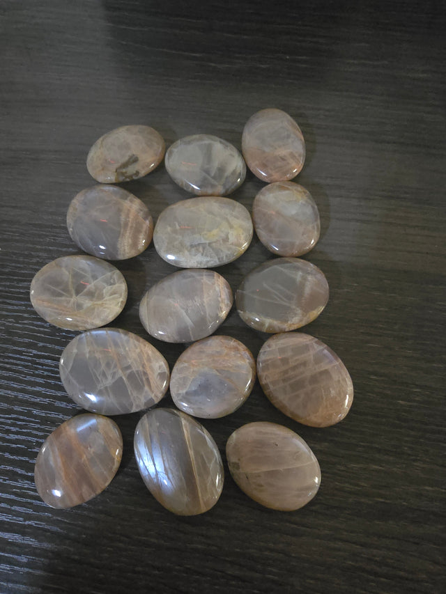 Hold tranquility in your hand with our Peach Moonstone Palmstones. Each uniquely shaped stone features gentle peachy tones and a subtle luminescence that catches the light beautifully. These smooth, polished palmstones are designed to comfort and ground you during moments of stress or uncertainty, offering gentle emotional support whenever you need it most.