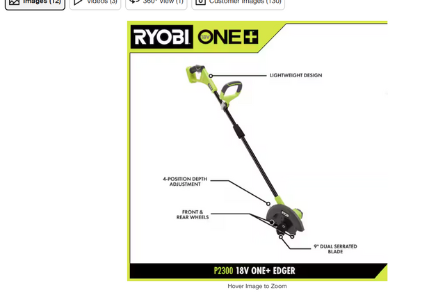 The RYOBI 18V ONE+ Edger utilizes a powerful motor allowing you to achieve clean cuts and precise edge around sidewalks and driveways. Experience gas performance with just the pull of a trigger and get over 25 minutes of runtime using an 18V ONE+ 2Ah battery (battery not included). Easily customize the depth of your cut with the 4-postion single point depth adjustment ranging from 0.25” to 1.5”. The front and rear wheels allow you to have more control and ultimate stability when edging. Comfortably get the job done with the lightweight design and over-molded handle. Best of all, it is part of the RYOBI ONE+ system where any 18V ONE+ battery works with any 18V ONE+ product.