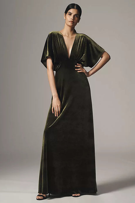 Sale price $14900 Regular price $29800Unit price /UnavailableBHLDN Amelia Deep-V Stretch Velvet Maxi Dress Size S