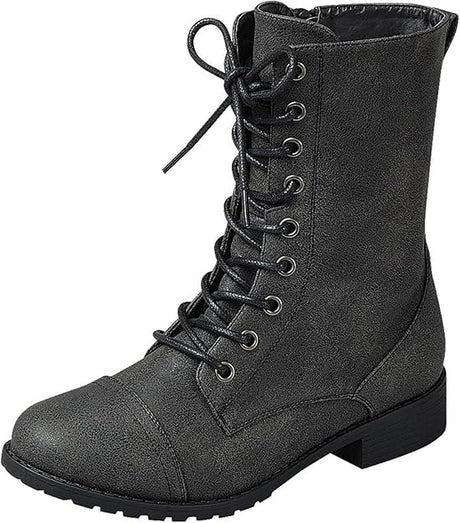 $44900Unit price /Unavailable Forever Link Womens Round Toe Military Lace Up Knit Ankle Cuff Low Heel Combat Boots Size 8