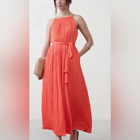 Banana Republic Gathered Halter Electric Coral Dress Size: XS