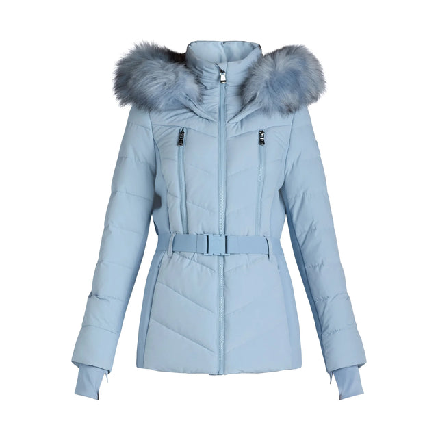 - Women's Belted Puffer Coat with Faux Fur Hood from F.O.G.