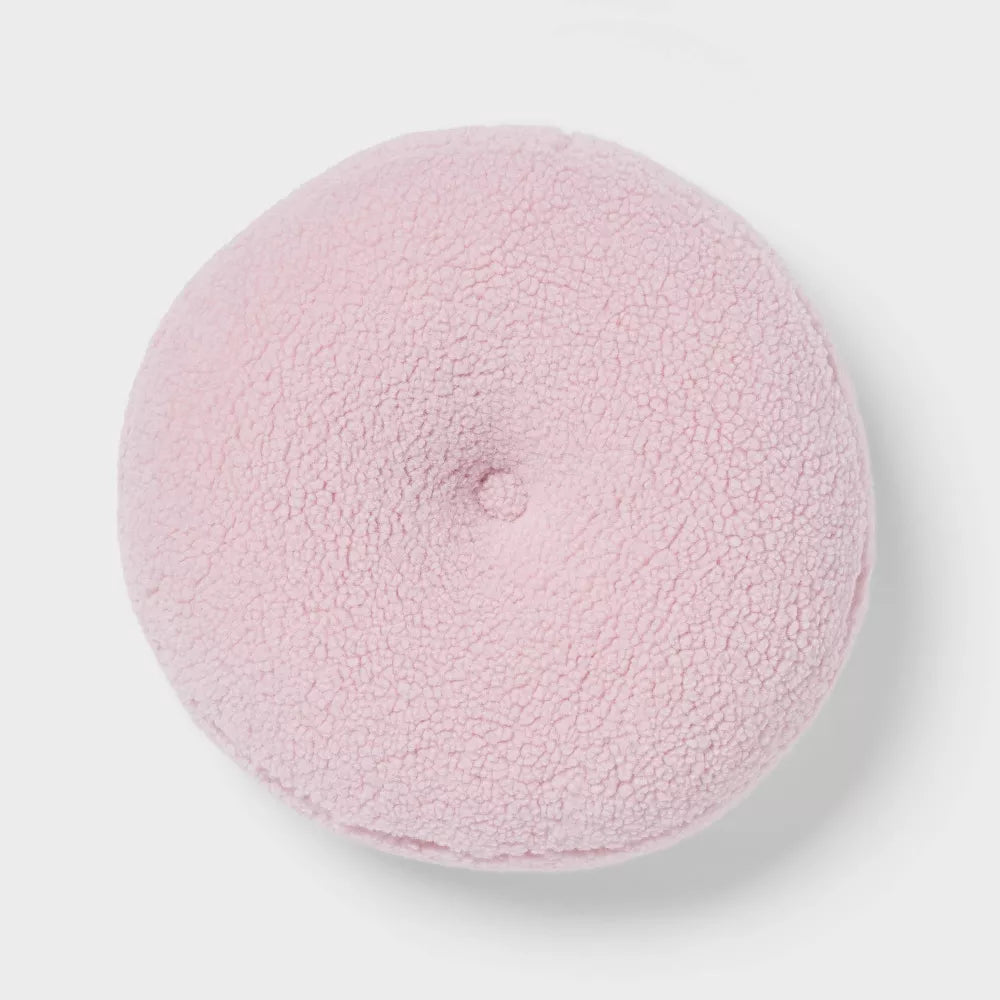 Your kid will love adding comfort and style to their space with the Round Boucle Decorative Pillow from Pillowfort™. Designed in a donut-like shape, this round pillow adds a cozy decorative accent to their room, and it's made with soft boucle fabric for cozy comfort. Featuring a pretty pink color, this decorative pillow will pair well with their room's existing decor.