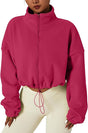 (Sm)-QINSEN Women's Full Zip Fleece-Color: Innuendo Rosy-Short Jacket Warm Winter Long Sleeve Stand Collar Sherpa Crop Coat