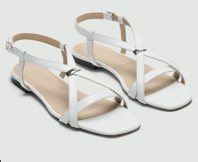 Crafted using smooth Italian leather with a natural sheen, our flat sandals feature stitched straps and an elegant metal ring detail. Fastened with an adjustable side buckle, this strappy style has a soft, ergonomic sole.