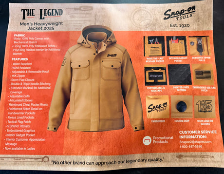 $30700Unit price /Unavailable SNAP ON TOOLS 2025 RA HOODED JACKET INSULATED WINTER COAT ZIP UP GOLD TAN NEW
