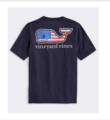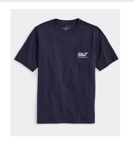 VINEYARD VINES | SS Flag Whale Pocket Tee in Navy | Medium