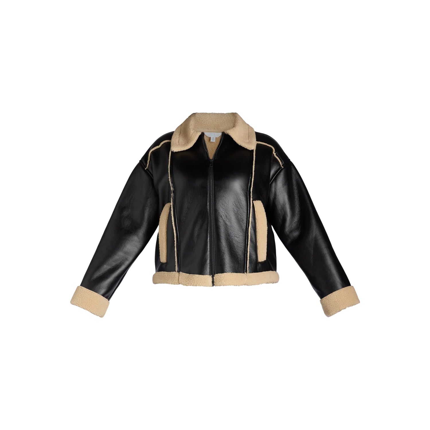 - Faux Shearling Lined Faux Leather Jacket for Plus Size Women from Time and Tru