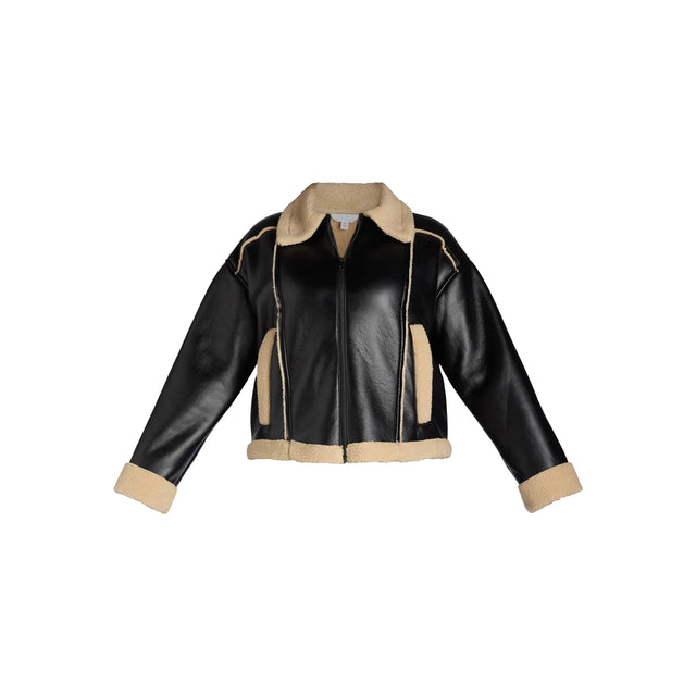 - Material: Faux Leather Face: 100% Polyester; Faux Shearling Lining: 100% Polyester; Trim: 100% Polyester