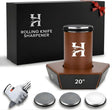 - EFFORTLESS ROLLING TECHNOLOGY Skip the learning curve of traditional whetstones. The ergonomic rolling design allows you to sharpen any knife simply by rolling the cylinder along the edge. It is the most efficient manual kitchen knife sharpener for maintaining expensive cutlery and restoring dull blades to "scary sharp" status.