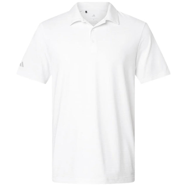 Up your style game with a custom Adidas Men's White Textured Stripe Polo. The jacquard texture offers a bit of flair to the already stylish polo that can go from the boardroom to the back nine with comfort and ease. Perfect for corporate events, charity brunches, or meeting with clients out of the office.