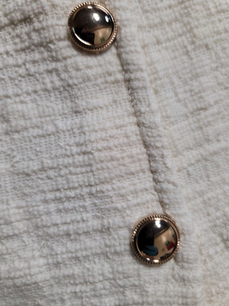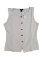 This sleeveless Ann Taylor Factory button-down in pale yellow combines sophisticated design with practical versatility. The cotton-polyester blend offers a structured yet breathable fabric that maintains its shape throughout the day, while gold-tone buttons add a refined finishing touch. The M fit provides a tailored silhouette that works seamlessly layered or worn solo. Perfect for transitioning between seasons, this piece pairs beautifully with tailored trousers, skirts, or denim, making it an essential addition to any curated wardrobe.