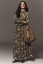 Anthropologie The Somerset Long-Sleeve Mock-Neck Chiffon Maxi Dress Green Floral Size: S Petite