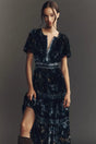 Anthropologie The Somerset Velvet Maxi Dress Dark Blue Size: S Petite