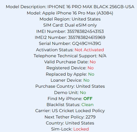 Apple iPhone 16 Pro Max 256GB Black Titanium Carrier Locked: Cricket