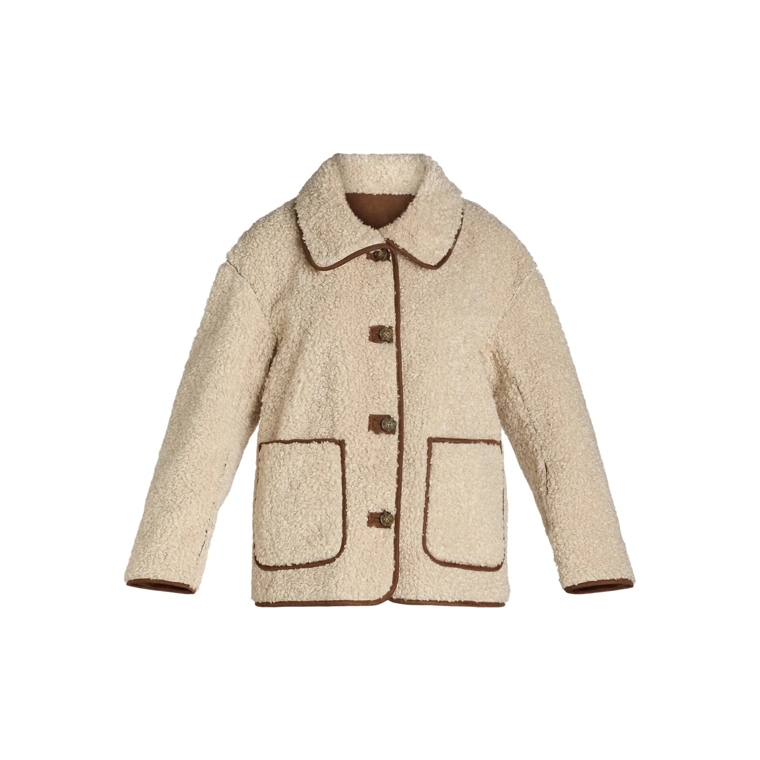 - Features: Reversible design; super-soft faux shearling shell; faux suede lining and trim
