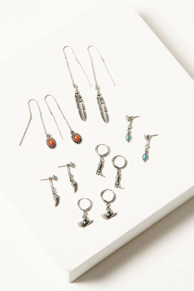 - Earring 5 and 6: Hoop backings with silver-toned hardware and cowboy boot and hat accents