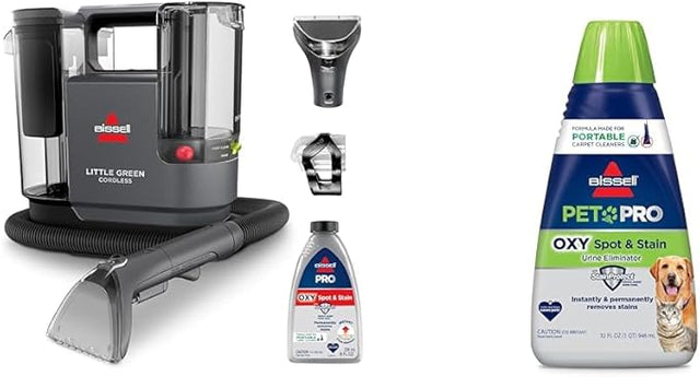 BISSELL Little Green Cordless SmartMix, Powerful Cordless Suction, HydroRinse Self-Cleaning Hose Tool + BISSELL® PET PRO OXY Spot & Stain Formula for Portable Carpet Cleaners, 32 oz.