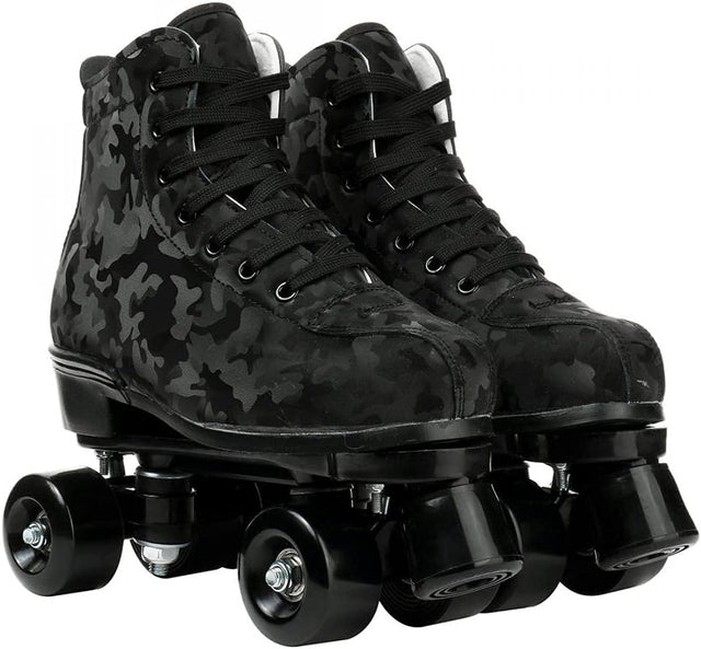 Black Camouflage Women High-Top Shoes Classic Double-Row Roller With 4 Wheels Size: 9.5