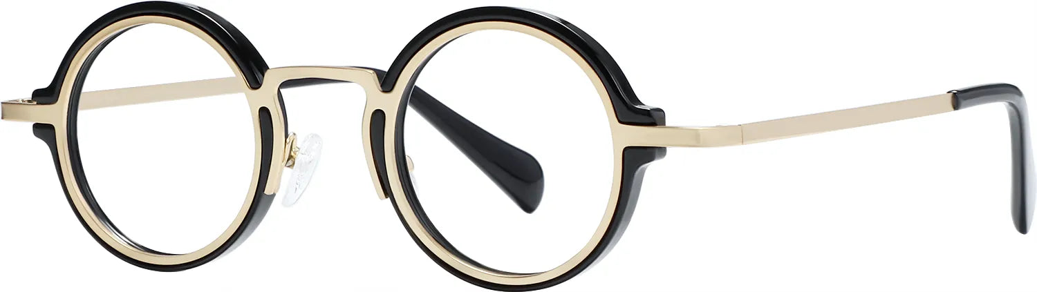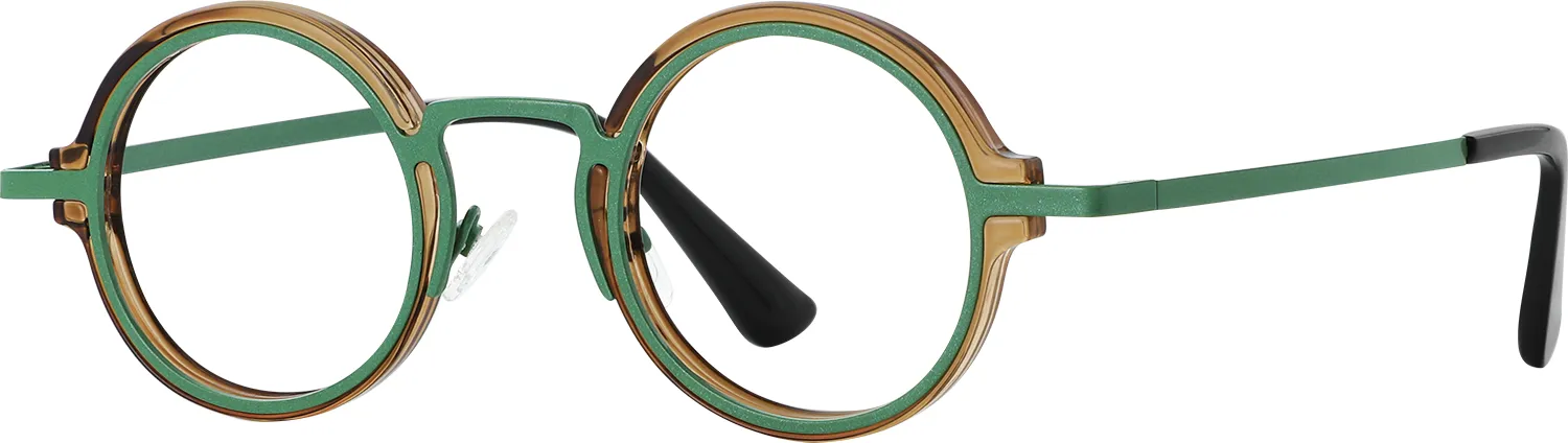 - The highlight of this pair of glasses is the two-tone round frame. The frame legs are also a patchwork design. It is made of comfortable panels and lightweight TR material to create a wearing experience that is both fashionable and durable.