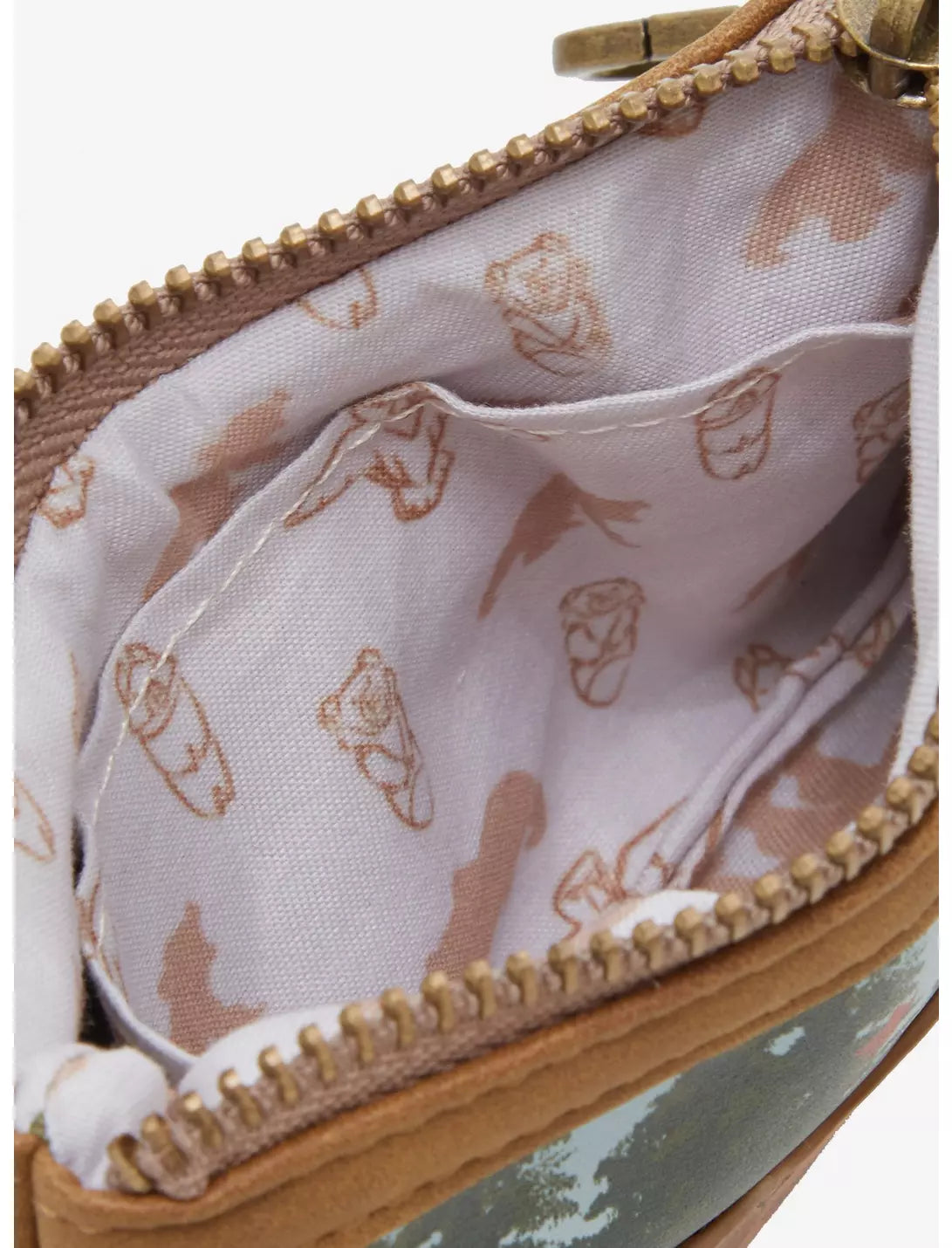 Featuring a patch of Koda and Kenai on the front, this cardholder includes multiple card slots, zippered pouches, a lobster clasp, and a totem zipper pull.
