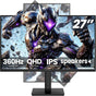 CRUA 27Inch Gaming Monitor 360HZ, QHD 1440P 120% sRGB IPS Computer Monitor with Built in Speaker, Height/Pivot/Swivel/Tilt Adjustable Vertical Monitor, Support FreeSync, DP&HDMI, Wall Mount-Black