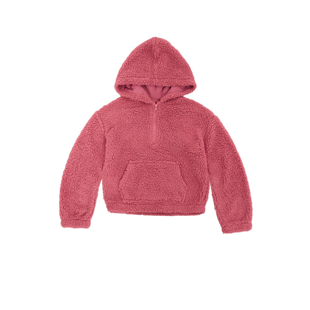 The Planet Gold Girls High Pile Fleece Hoodie offers cozy comfort for fall and back-to-school days. This long sleeve hoodie features a kangaroo pocket and quarter zip for added functionality. Soft and machine washable, it's easy to care for. Available in light pink, dark pink, green, cream floral print, and black floral print, there's a style to suit every taste. Crafted from 100% Polyester, this hoodie provides both durability and warmth.