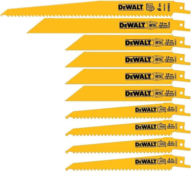 DEWALT Reciprocating Saw Blades, 10 Piece Combination Set, Various Sizes (DW4898)