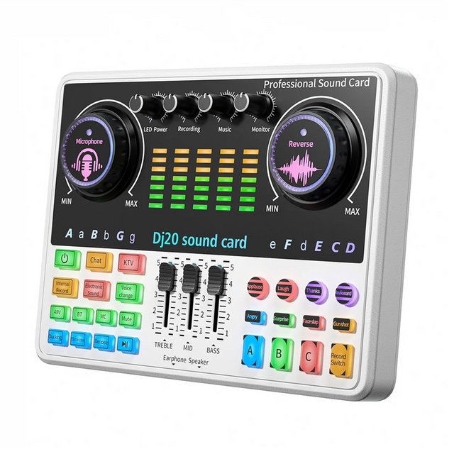 DJ20 Live Sound Card Equipment 48V Condenser Microphone Reverberation Noise Reduction for Cardioid Design Microphone B
